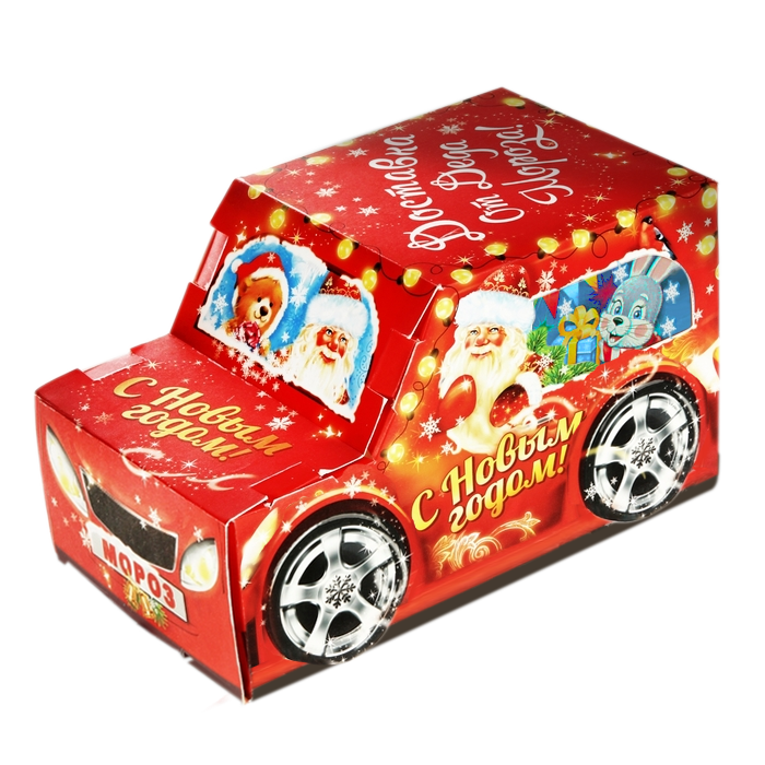 Кроме места для конфет предусмотрен кузовок для чего-то не съедобного, что останется - зверек-символ года, например, мягкая игрушка.
