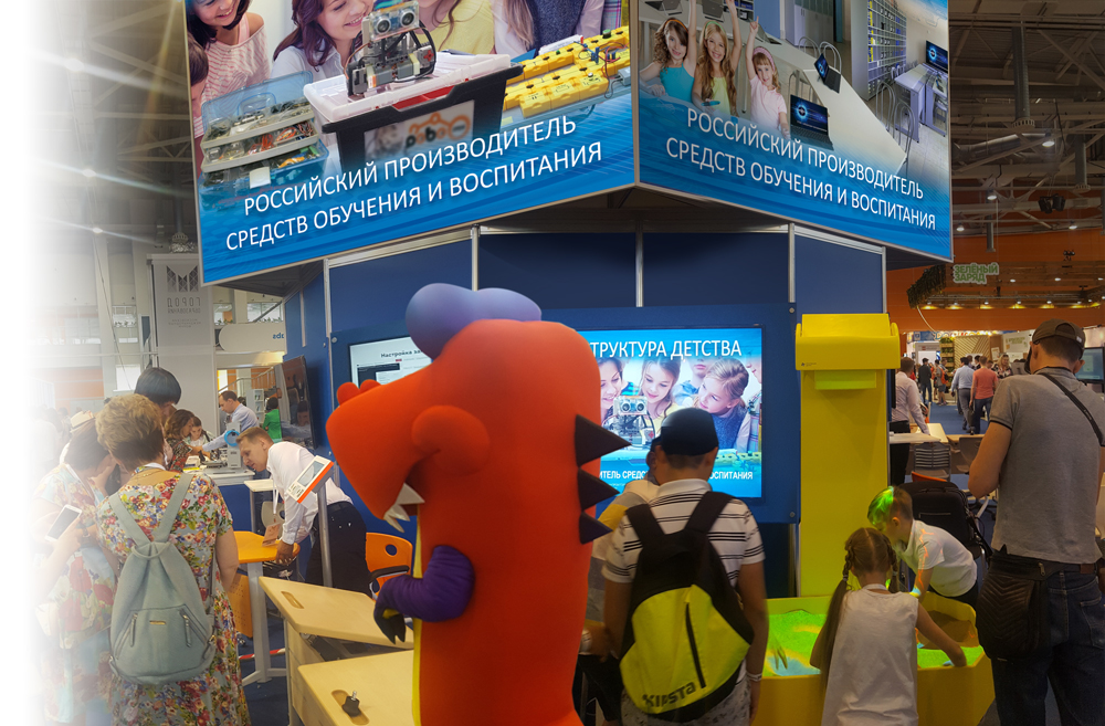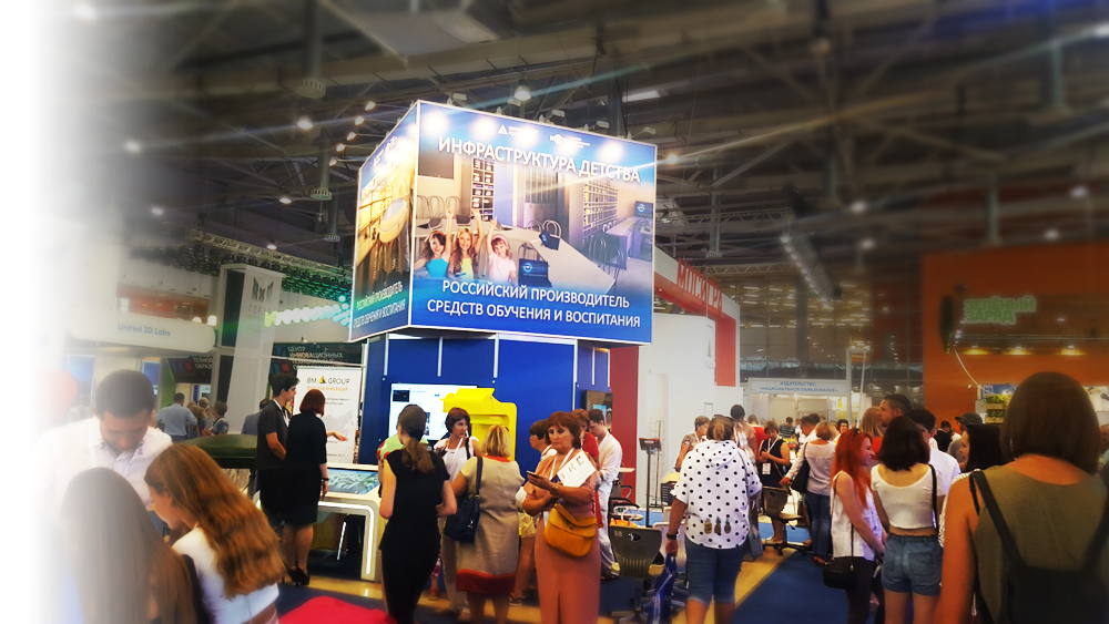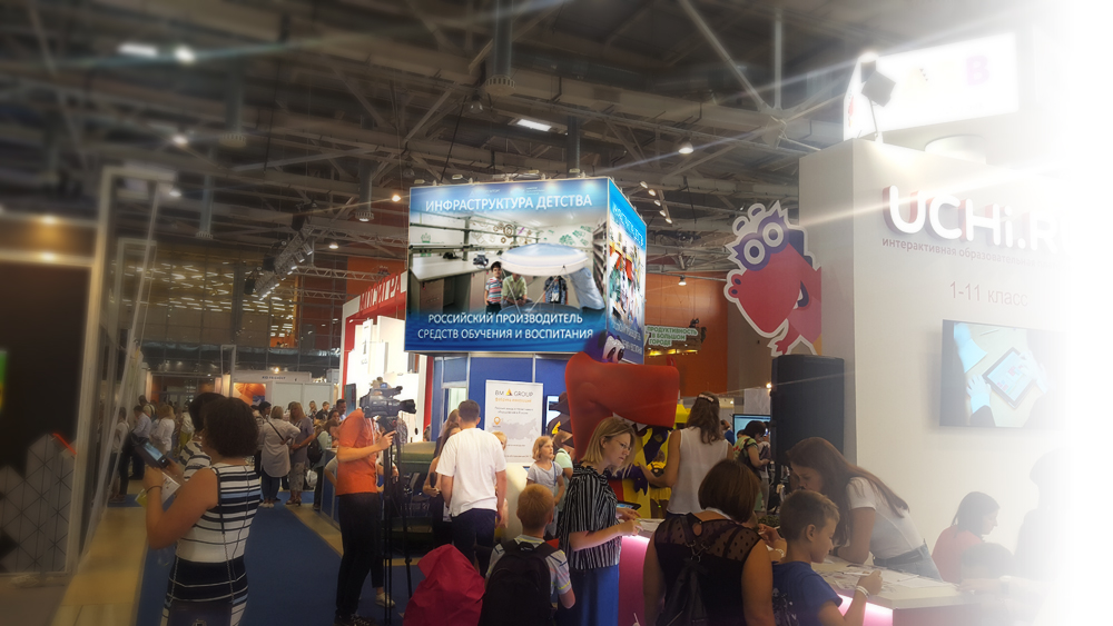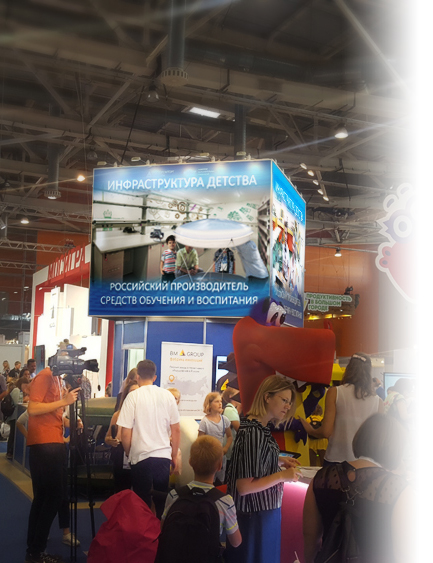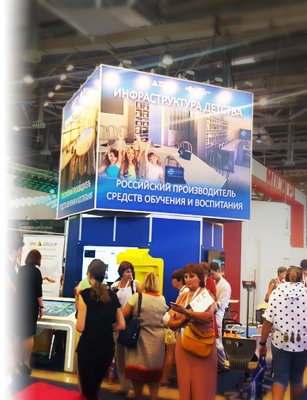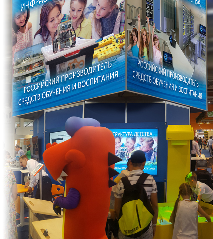 Принцип "донжона" обеспечивает полную рабочую отдачу всех сторон "острова" стенда, широкие экспозиционные фронты для экспонентов (а на данной объединенной экспозиции "Российский производитель" принимали участие 6 компаний), информационные видео ряды брендов у экспонентов "за спиной" и большие баннеры-зазывалы на верхнем уровне, работающие на дальние расстояния