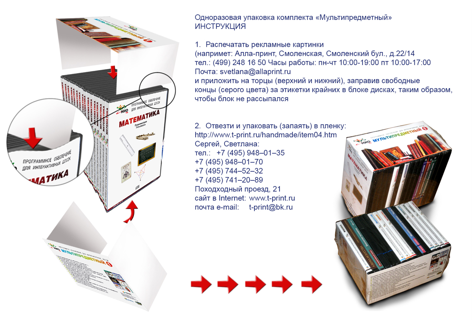 Отсюда, общая упаковка дисков в собственных футлярах, имеющих свои собственные обложки от своих производителей, состояла буквально из двух листов бумаги, распечатанных на принтере. Листы особым образом вставлялись в блок, собранный из футляров, фиксируя его, далее блок запаивался в оберточную пленку.