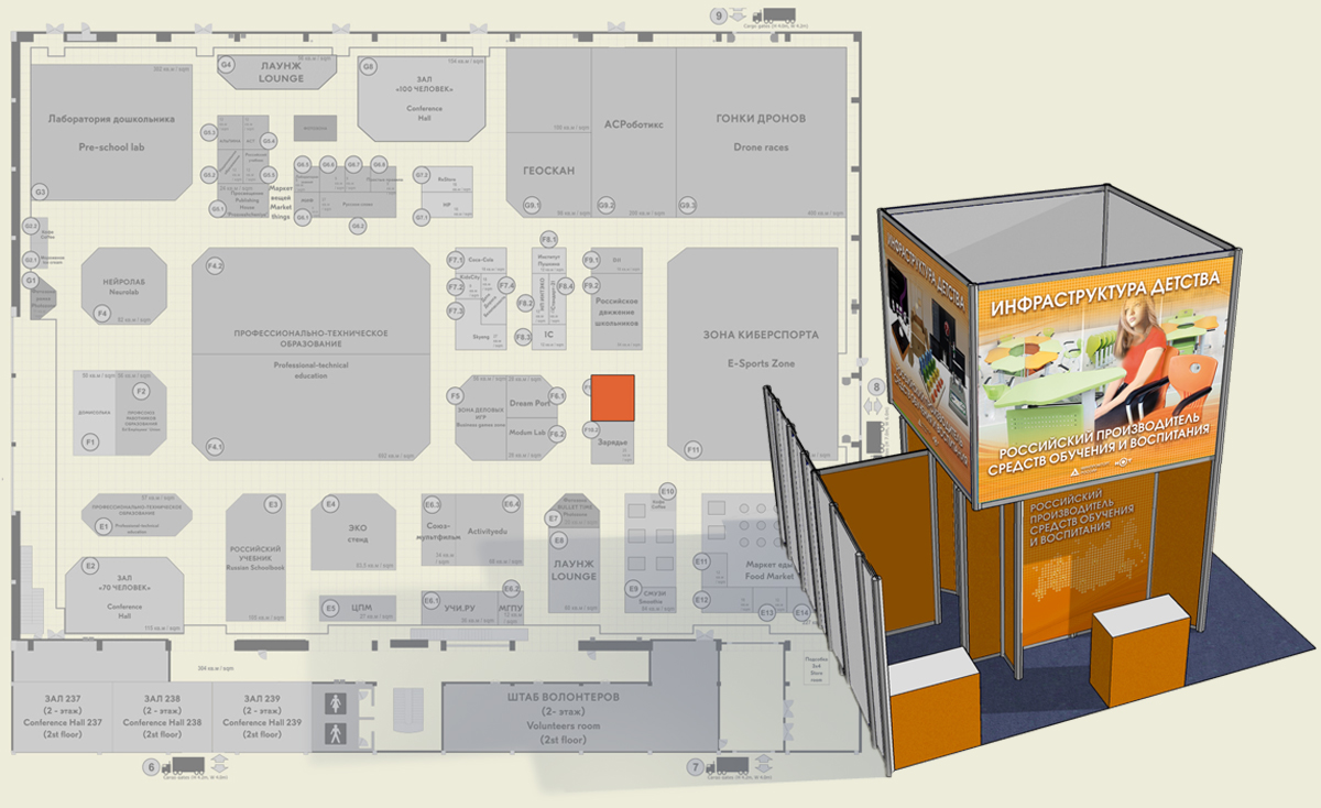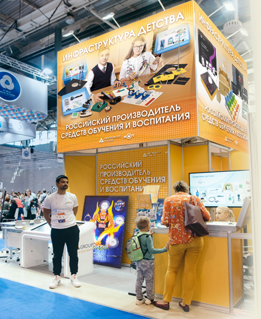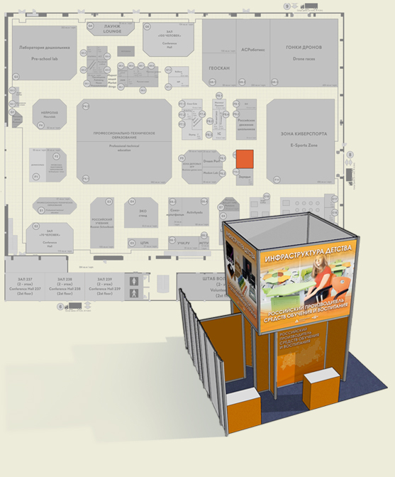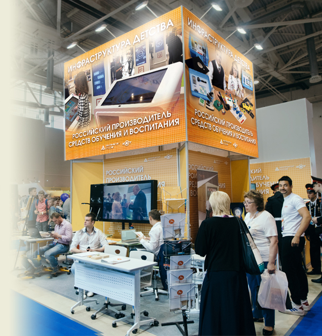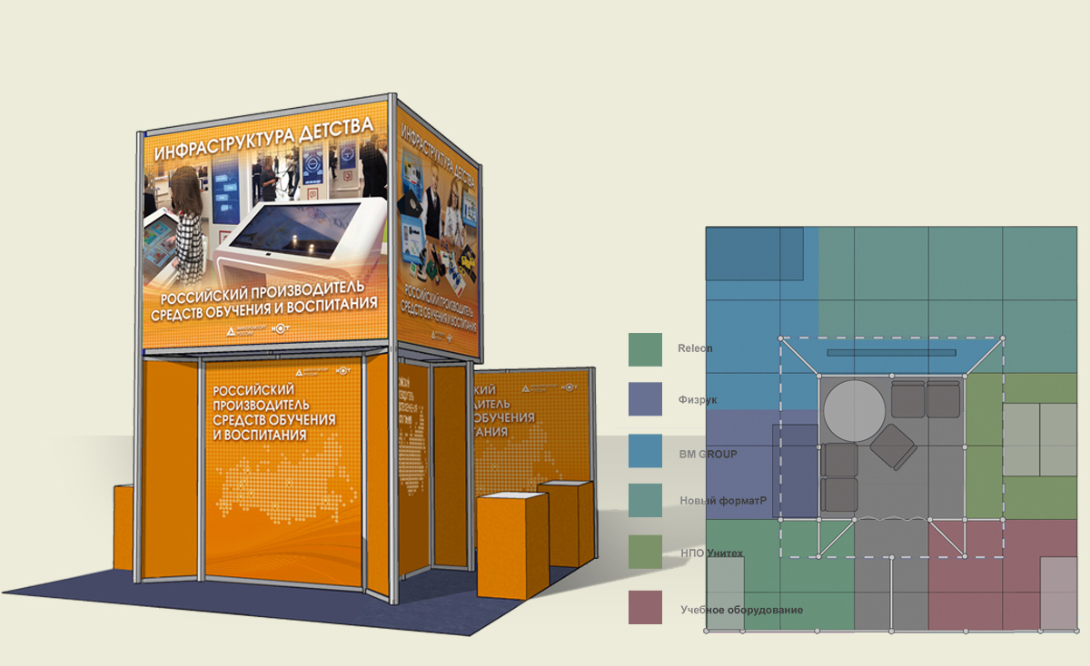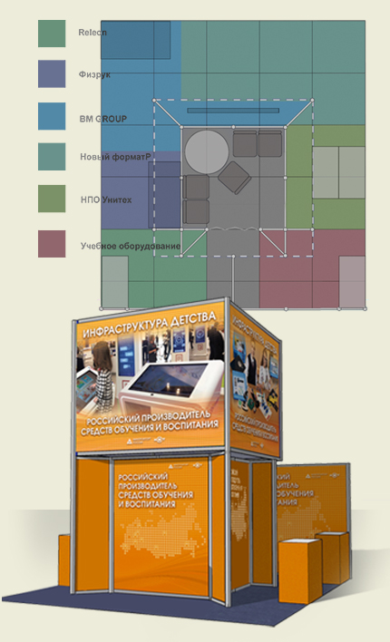 Принцип "донжона" обеспечивает полную рабочую отдачу всех сторон "полуострова" стенда, широкие экспозиционные фронты для экспонентов (а на данной объединенной экспозиции "Российский производитель" принимали участие 6 компаний), большие баннеры-зазывалы на верхнем уровне, работающие на дальние расстояния