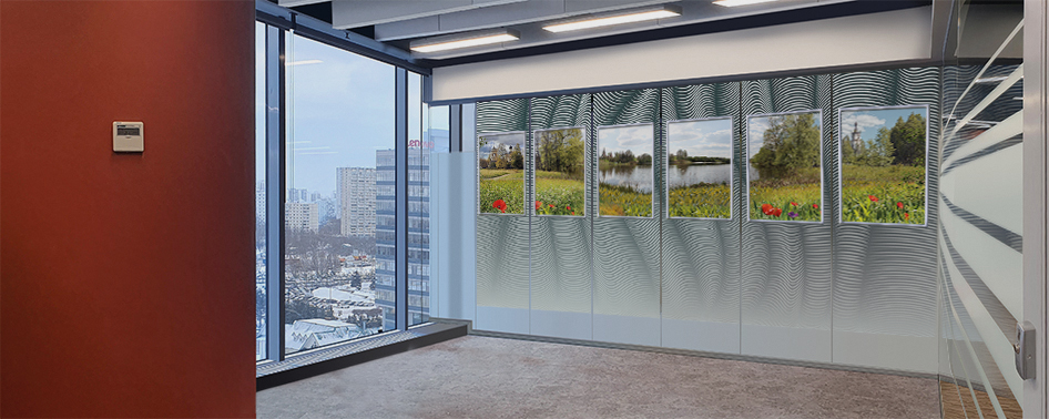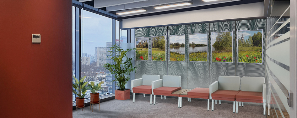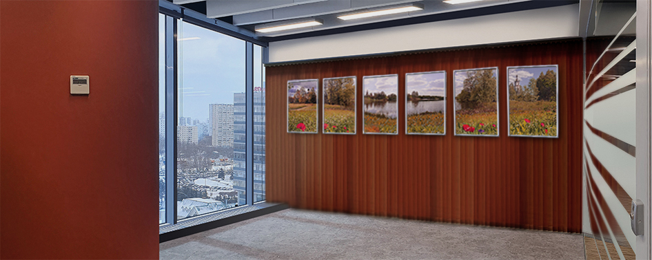 - несущая конструкция для установки без отступа от стены должна иметь подвесное крепление к верхнему перекрытию и анкерное крепление к нижнему перекрытию, что потребует при устройстве конструкции значительных демонтажных-монтажных работ в сравнении с другими вариантами решения оформления помещения;
