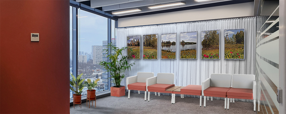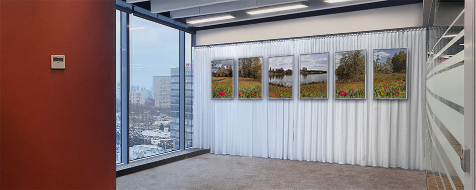 - устройство стенда требует выделения места, которое в помещении в дефиците, для установки несущей конструкции, которая должна быть собрана индивидуально или с использованием системы Tritix с квадратными колонами по периметру и двойными по середине, в связи с большой площадью полотна;