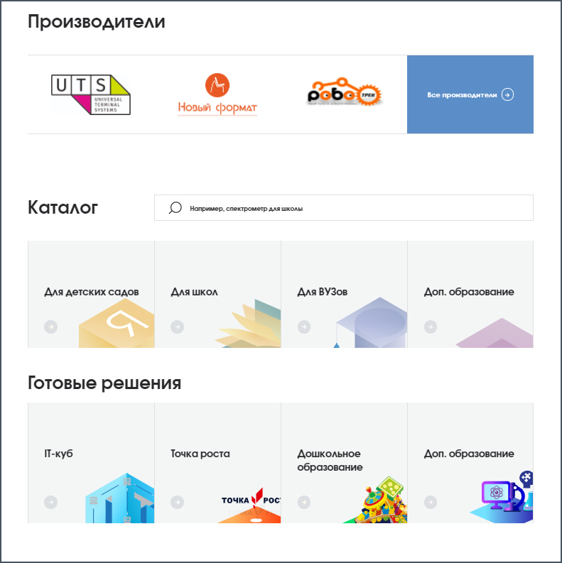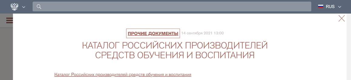Каталог в 2022 году выходит в формате представления менеджменту образовательных организаций и педагогической общественности российских производителей работающих для сферы образования и сегментирован по направлениям: