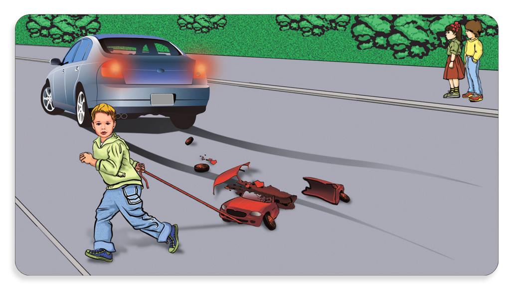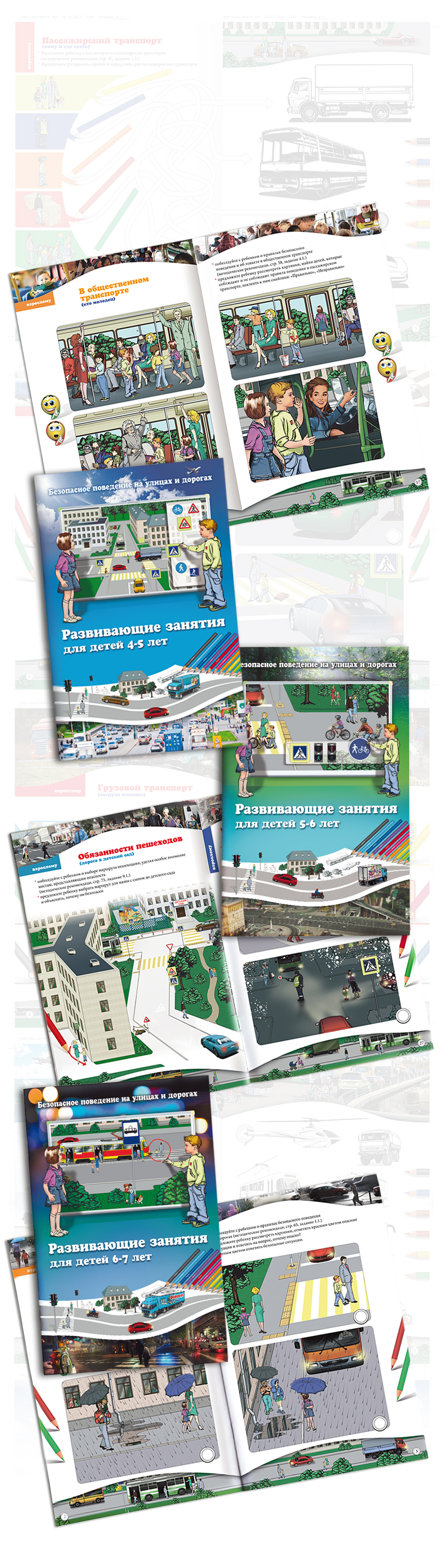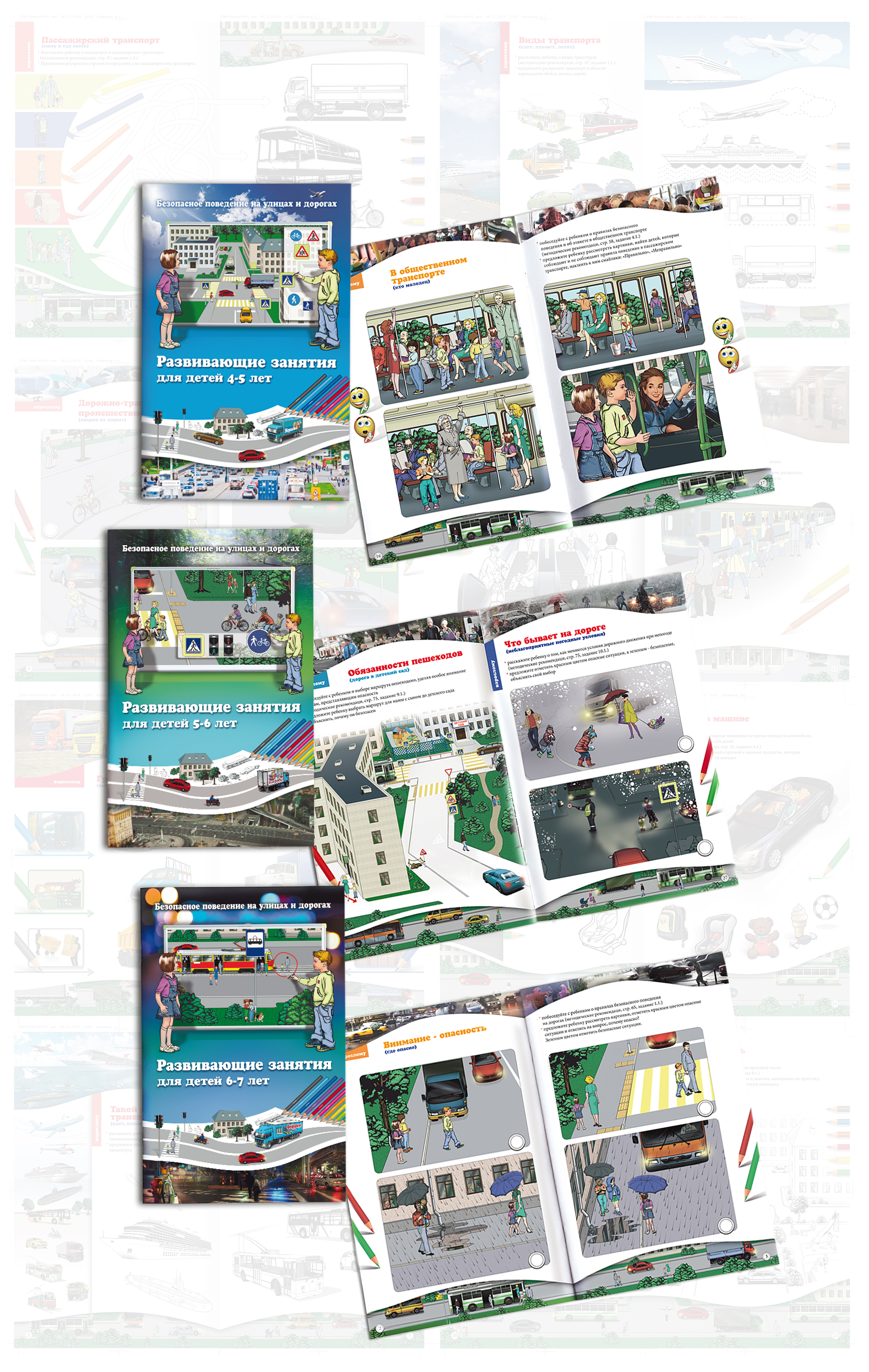 Это не ново, сами по таким учились, но в нашем случае: рисунки реалистичны и с сомасштабными элементами сюжетов, как в реальности, чтобы ребенок, оказавшись на дороге, не растерялся, увидев все совсем по другому.